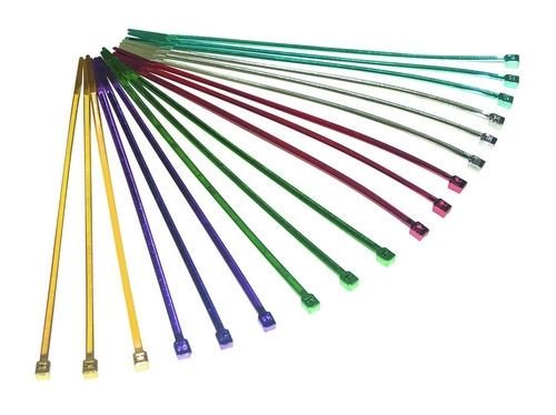 These tie straps are made of nylon with a chrome finish to match chrome convoluted tubing. The length measures 8" and they come in a pack of 10.