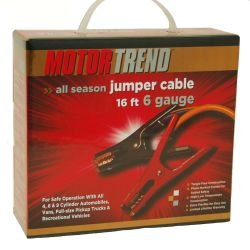 The Motor Trend MTA616-CCA 16-Foot Jumper Cables with Extended Clamps let you conveniently reach far away power sources and are made of 100-percent copper for maximum conductivity. These jumper cables are perfect to use in all seasons, keep in any car, and are designed to be compatible with any 4, 6 or 8 cylinder cars, vans and light pick-ups. The 6-gauge can take up to 500-AMPs of electricity. Cords are tangle free and PVC lined for your protection. The unique extended clamps have the extra reach you need to get into tight spots, and they are also phase marked for added safety. These jumper cables can be used for side post or top post hook-ups, keep them in your car for easy access during any situation, and eye protection is recommended when using jumper cables. Professional quality, these heavy-duty jumper cables ensure quick and efficient connections, designed with your safety and convenience in mind. Avoid being stranded waiting for a tow truck; one use and the jumper cables have paid for itself! Perfect for cars, boats, trucks, SUV's, RV's, motorcycles, ATV's, snowmobiles and personal watercraft. The 16-foot length allows passenger vehicles to be parked front to back. The Motor Trend MTA616-CCA 16-Foot Jumper Cables have a limited lifetime warranty. Trust the brand you buy! Motor Trend has been the nation’s #1 automotive authority for over 60 years.